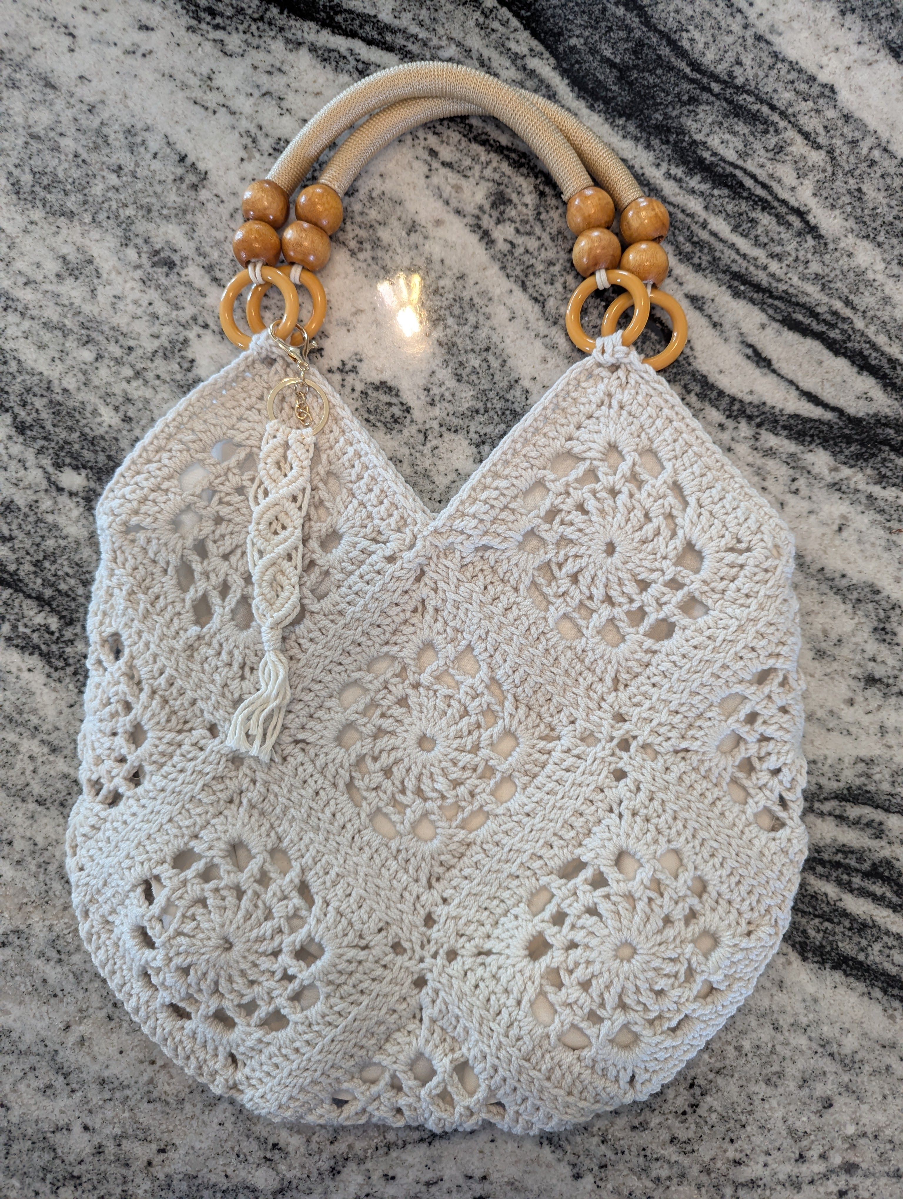Handmade Boho Tote w/Beaded Handles with macrame charm included