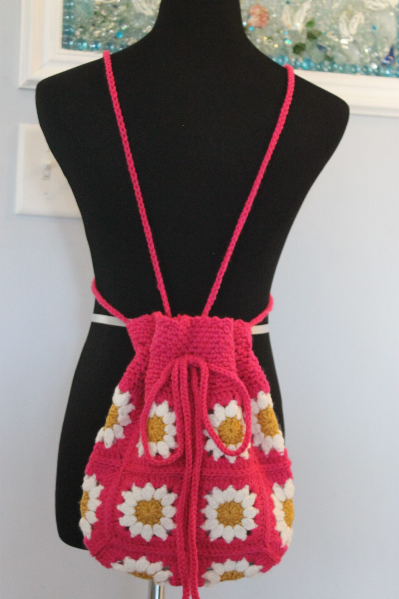 Handmade Daisy Backpack / Drawstring / Crossbody Bag – Pink