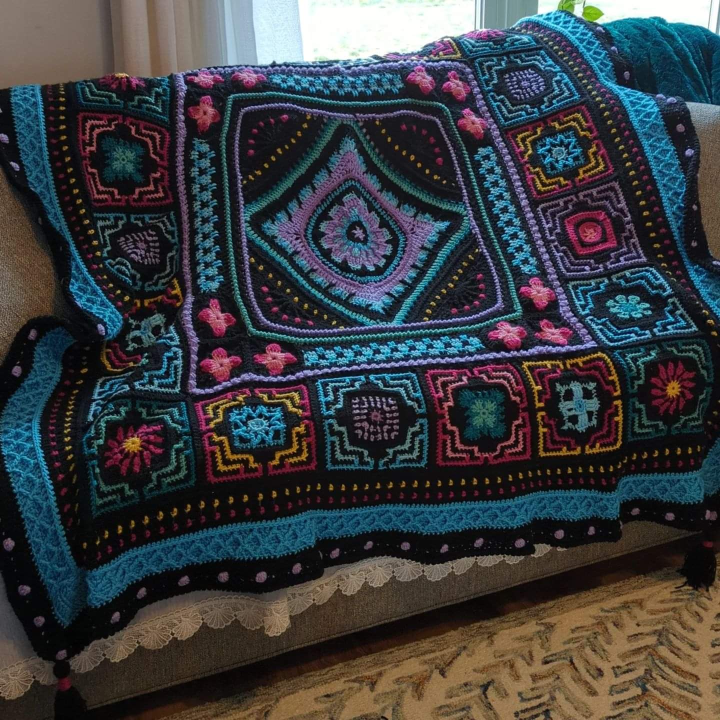 Gorgeous morrocan-style blanket handmade from acrylic yarns.